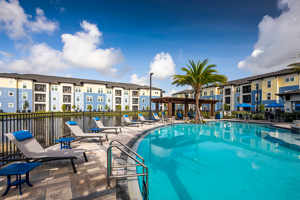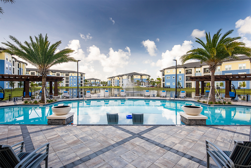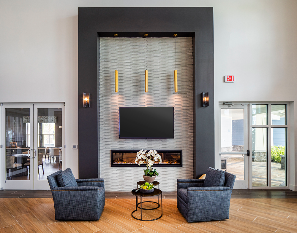 The amenity space was designed with quality and convenience in mind. Resort-style amenities include a modern stand-alone clubhouse that will house a fitness room with state-of-the-art equipment, yoga/group fitness room, cybercafé, and sports lounge.
