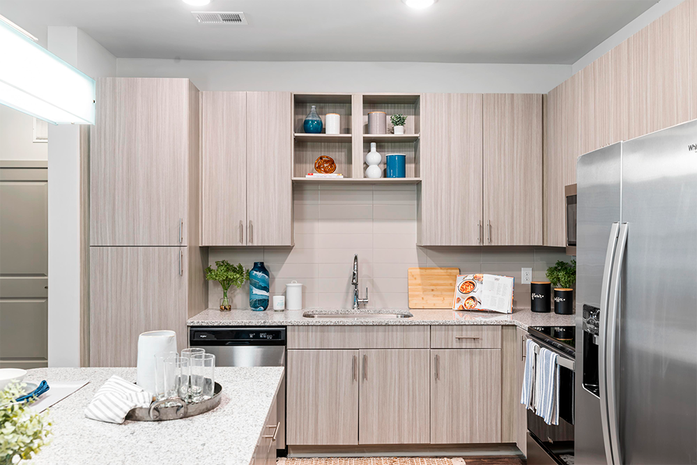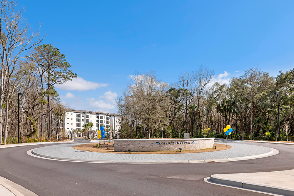 Residents of Grande Oaks Parc enjoy open floor plans, screened balconies, luxury vinyl tile flooring, European style cabinets with Quartz countertops, tiled backsplashes, stainless steel appliances, and stand-up showers with enclosures. The well-appointed 348 one, two, and three-bedroom apartment homes are equipped with elevator access and range from 770 to 1,413 square feet.
