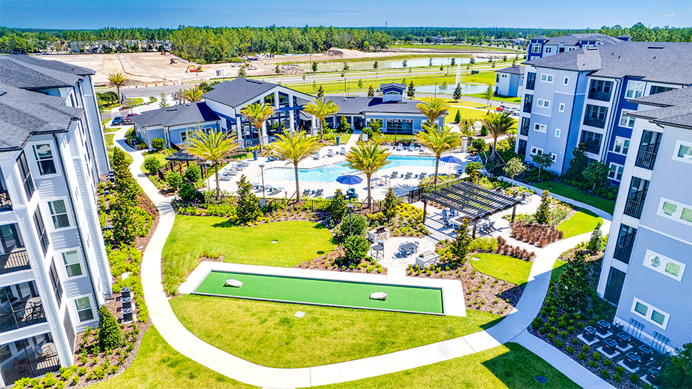 With 249 units, Integra Park at Oakleaf offers residents several amenities in this urban design, including a pool, dog parks, fitness center, grilling stations, courtyards, elevators, and garages.