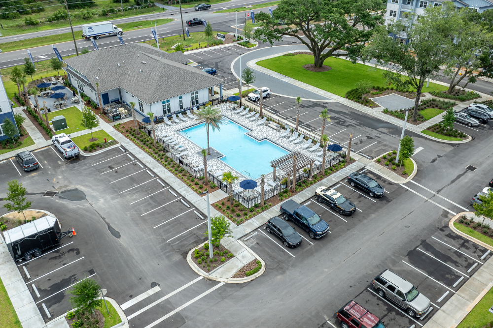 Amenities include a clubhouse, fitness pool, dog park, and designated working areas.