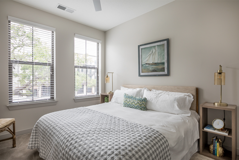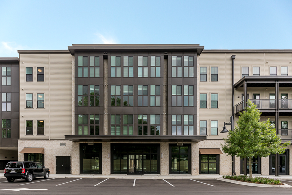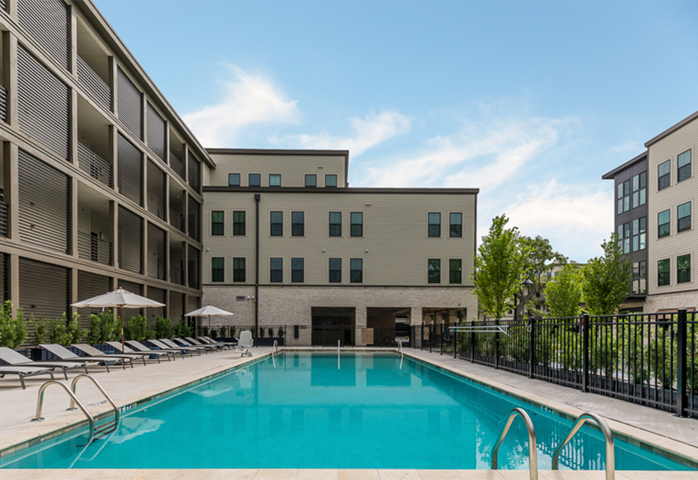 Each unit is stylishly appointed with neutral tones and premium finishes like stainless steel appliances, wood floors and quartz countertops.