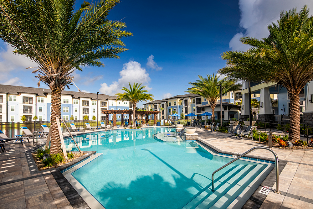 Nestled on 30 acres, Addison Pointe offers 370 residences in eight buildings with elevators, a classic exterior aesthetic, and a modern interior design. With six spacious floor plans ranging from 704 to 1,409 square feet, Addison Pointe features one, two, and three-bedroom apartment homes. Interior features include granite countertops, custom cabinets, stainless steel appliances, in-home washer/dryer, tile backsplash in kitchens, wood plank floors, and private balconies. The amenity space was designed with quality and convenience in mind. Resort-style amenities include a modern stand-alone clubhouse that will house a fitness room with state-of-the-art equipment, yoga/group fitness room, cybercafé, and sports lounge.