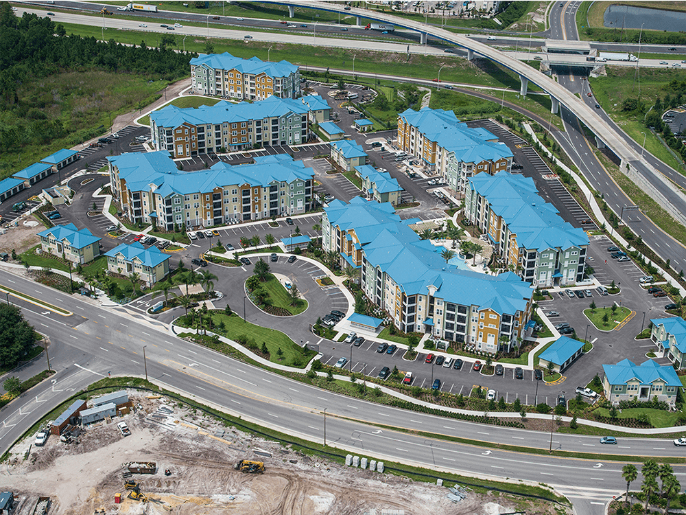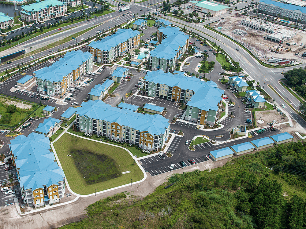 Integra Cove is conveniently situated close to SeaWorld and the Orlando Convention Center. The 446,509 sq. ft. development is made up of six mid-rise, four-story buildings with elevators. Residents may choose from one, two and three bedroom homes with one or two baths ranging from 629 to 1,303 square feet. This development boasts high end amenities including a clubhouse with state–of–the-art fitness center, business center, pool with cabana, BBQ stations and outdoor fireplaces.