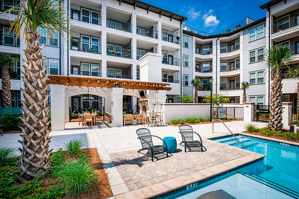 The LIV Ironwood Apartments at Hammond’s Ferry are part of a riverfront, mixed-use project with breathtaking views of the Savannah River. The architecture of LIV Ironwood is designed to fit in with the area’s rich history and compliment the traditional southern architecture. The 7.1 acre property shares the 200 acre mixed-used area with 800 other residences – single family homes, town homes, carriage homes, cottages and live/work space. Residents have 14 luxury floor plans to choose from.