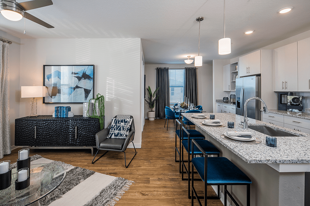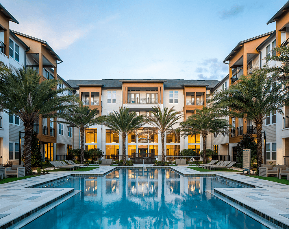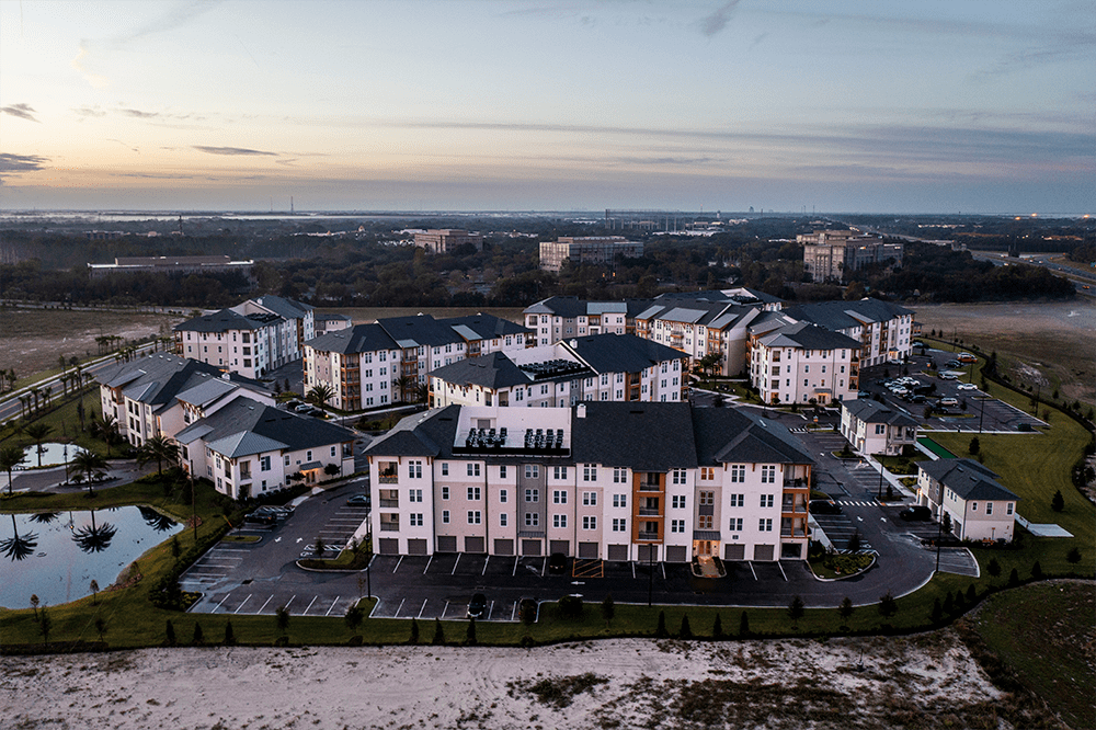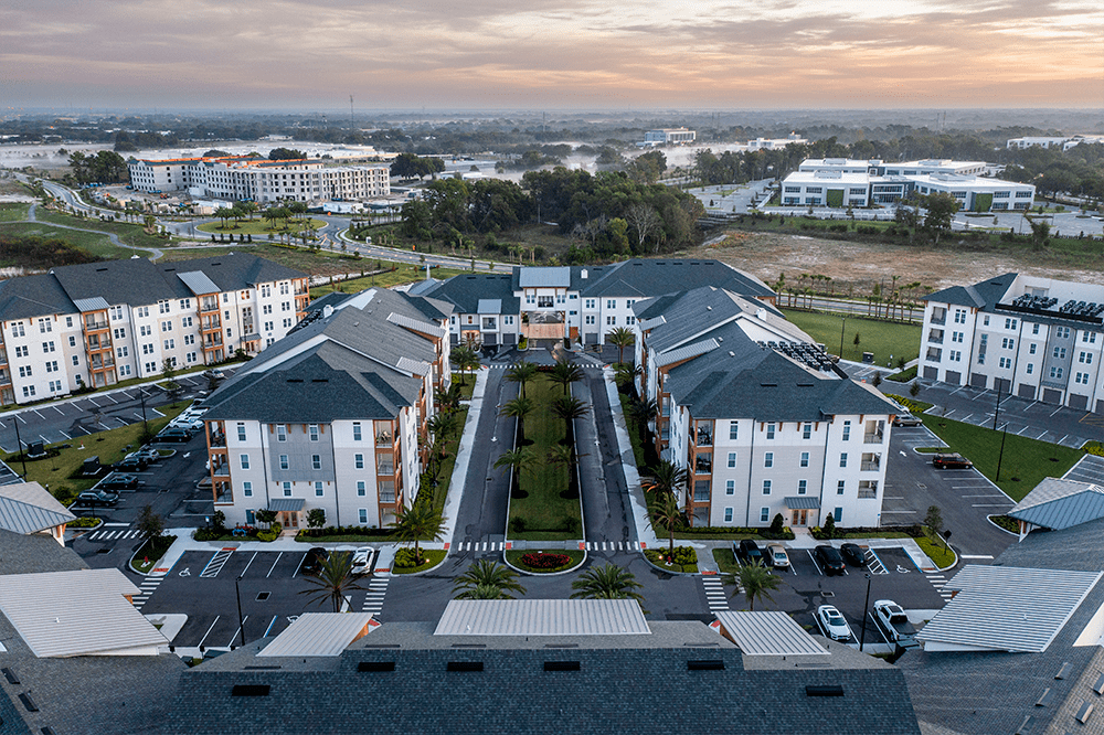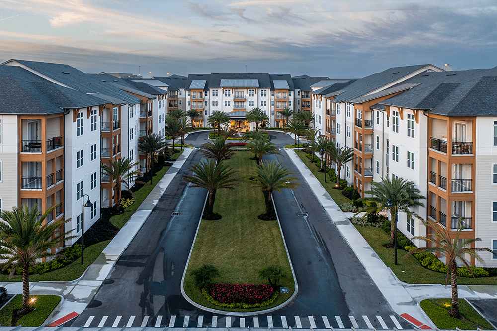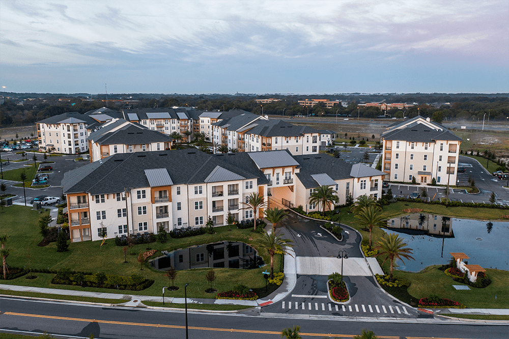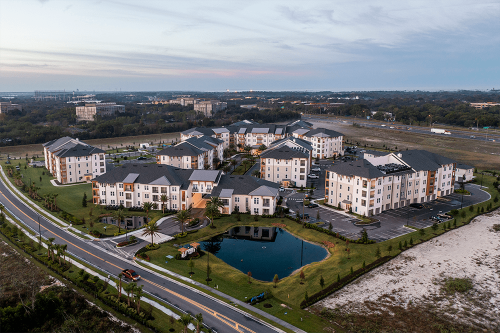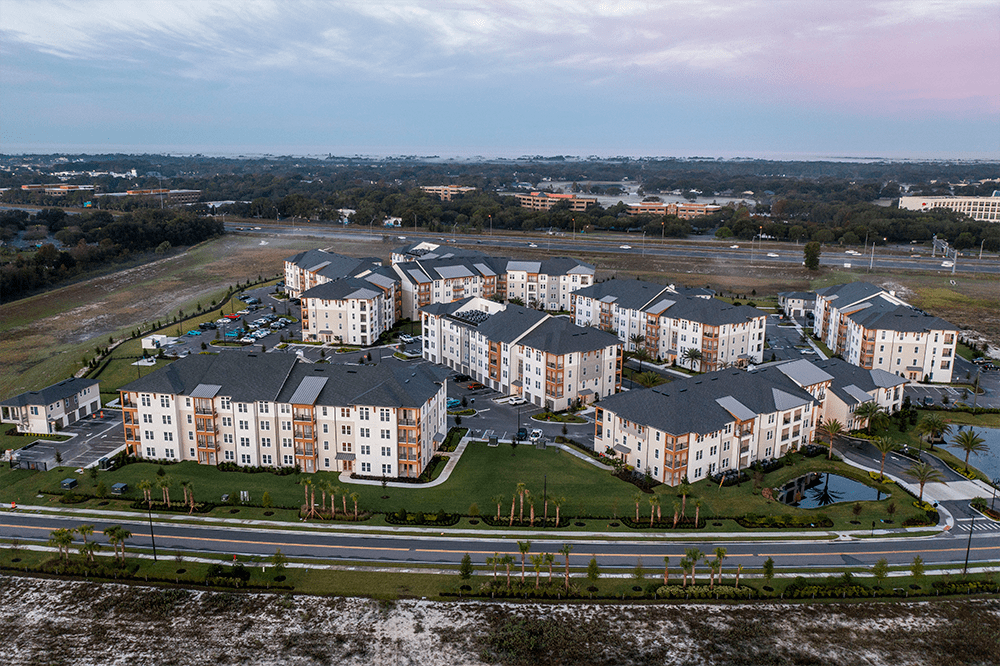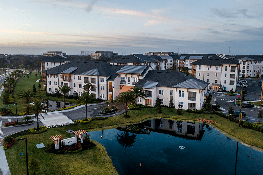 The Helix is a 300 unit, stick frame multifamily development located near I-4 in Lake Mary, Florida. Units within this four-story, garden-style apartment complex come in an assortment of one, two, and three-bedroom floor plans. All interiors feature shaker-style cabinets with granite countertops, stainless steel appliances, and side-by-side washers and dryers. Amenities onsite at The Helix include a fitness center, dog park and spa, game room, bocci ball court, and car care center.