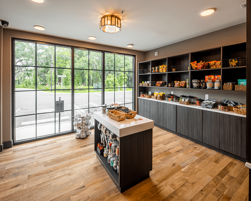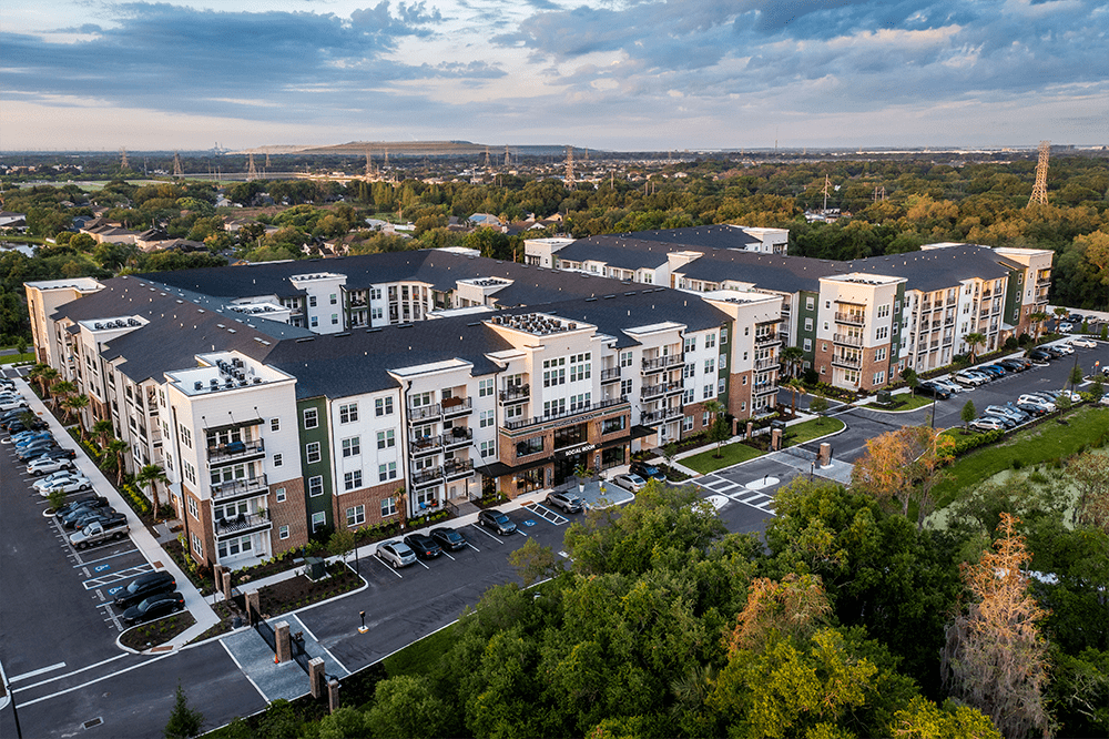 The Santos Flats is an urban-style multifamily development of two-story and four-story buildings. Units are available in one, two, and three-bedroom floor plans.