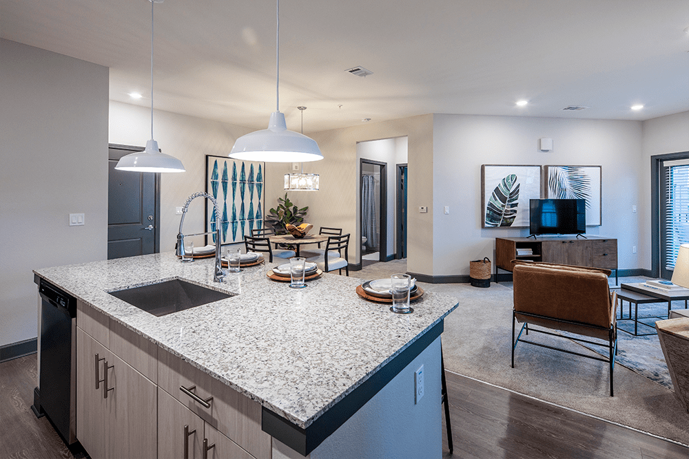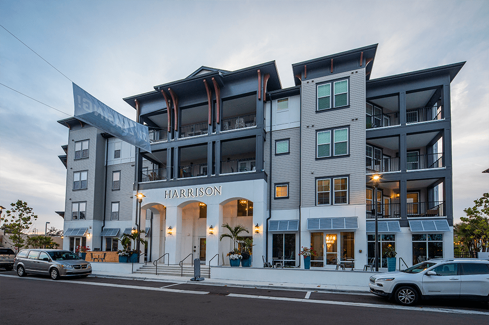 The Harrison Apartment Suites offers 240 beautiful apartment homes in 17 spacious one, two, and three-bedroom floor plans ranging from 840 to 1,988 square feet. Interior highlights include granite countertops and vinyl plank flooring in the kitchen, bath, and foyer. All units are equipped with ventilated vinyl coated shelving and washer/dryers.