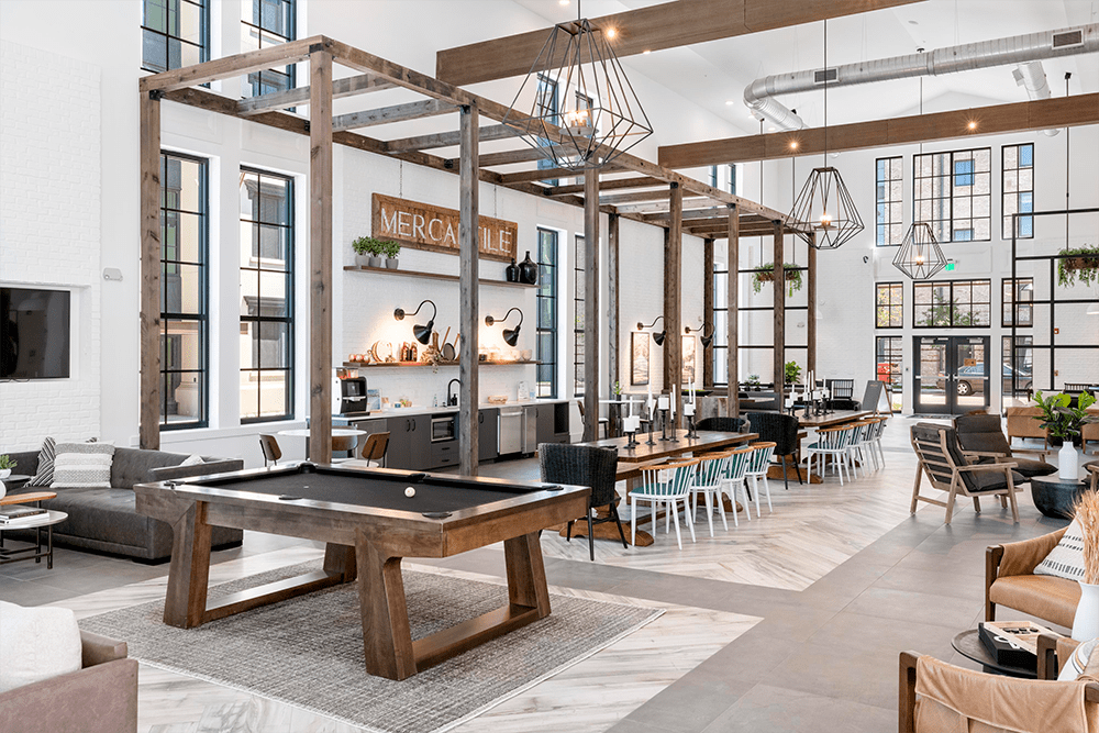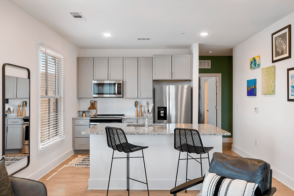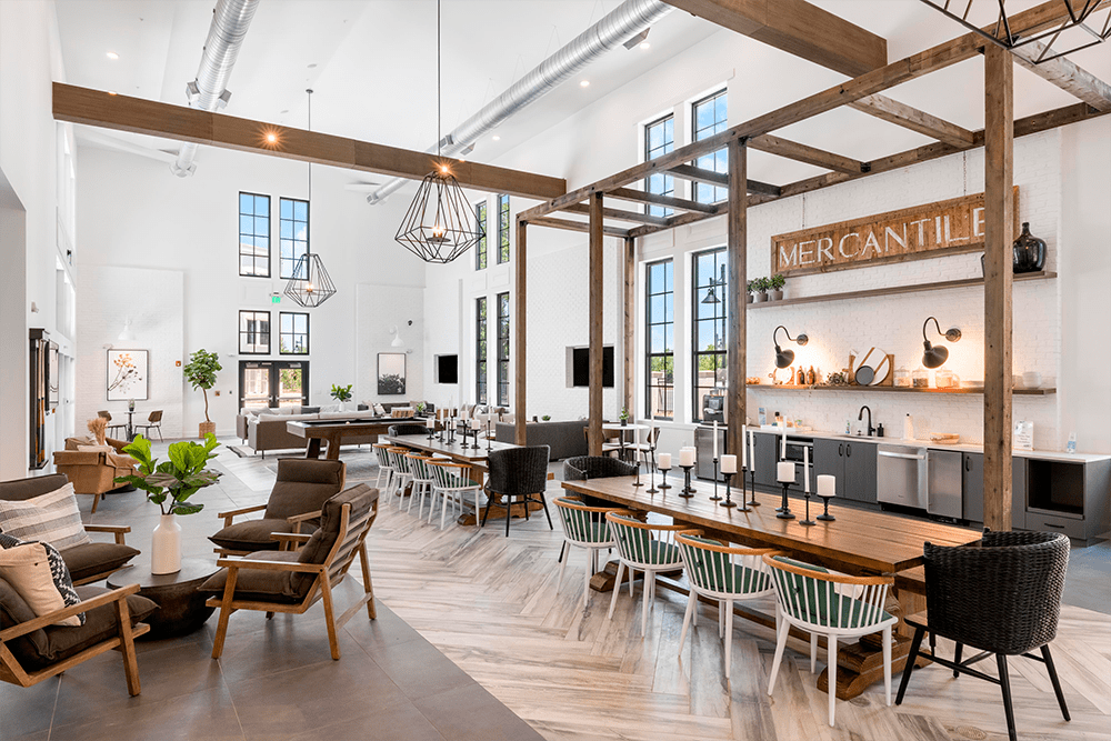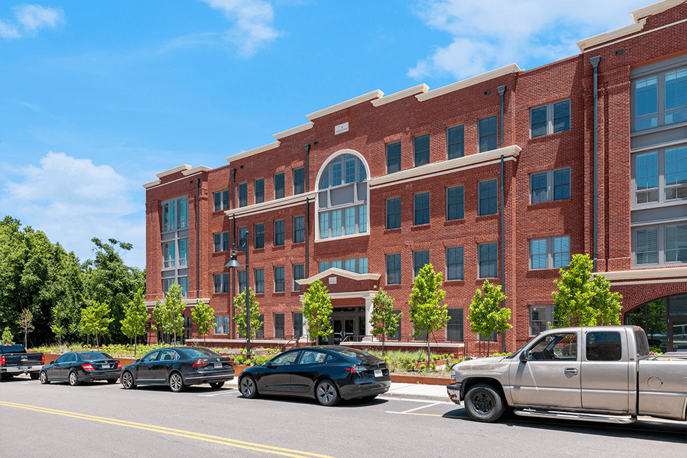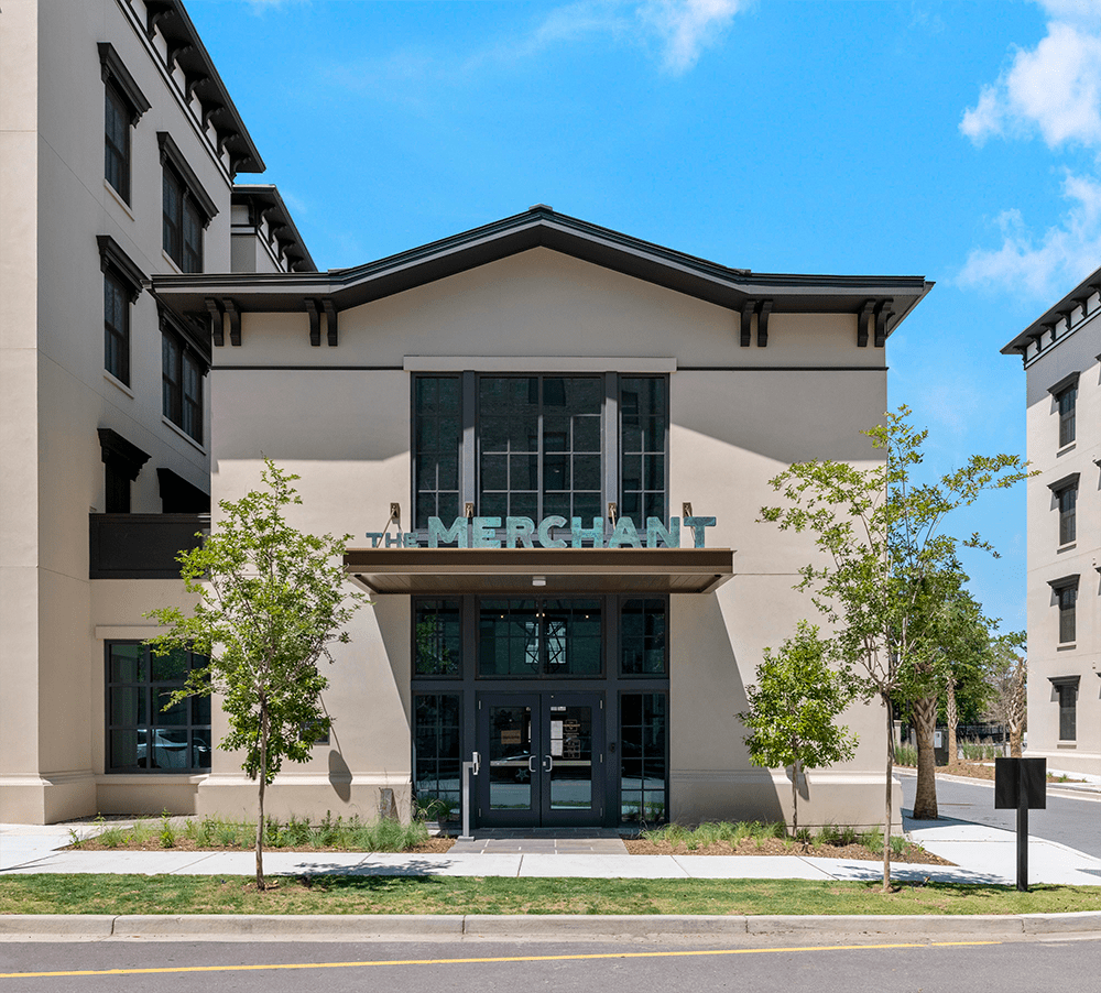 The Merchant features 231 units in 15 spacious floor plans in one or two bedrooms ranging from 565 to 1,074 square feet. Residences feature luxury vinyl and carpeted flooring, stainless appliances, granite countertops, and shaker cabinets, tile backsplashes and glass shower enclosures, walk-in closets, and six convenient elevators.