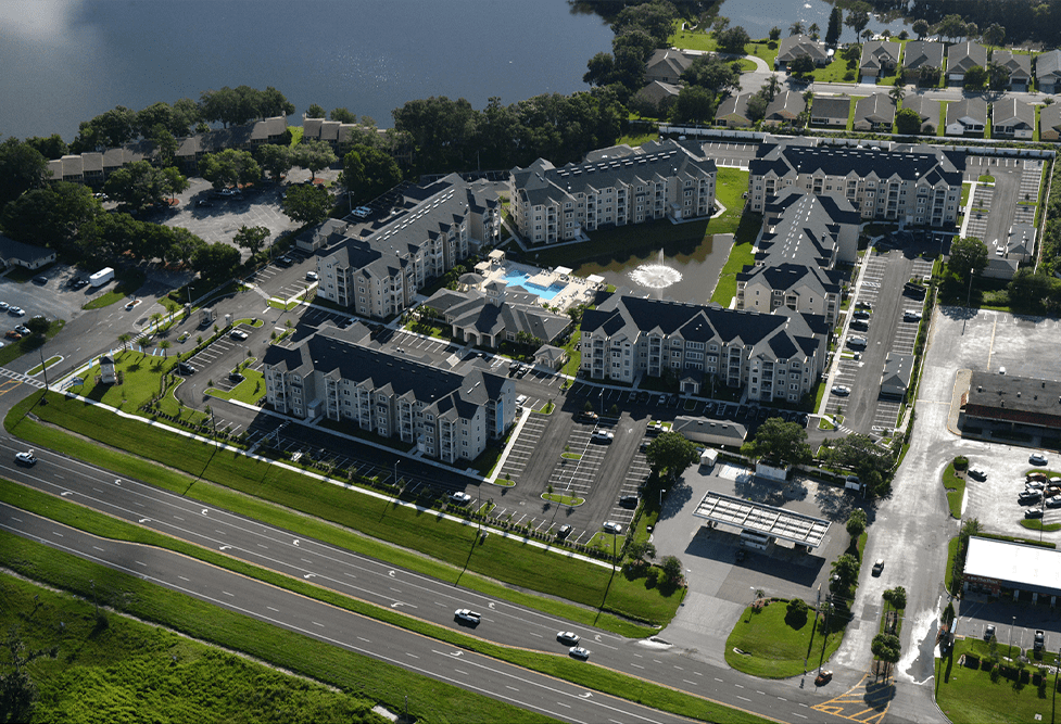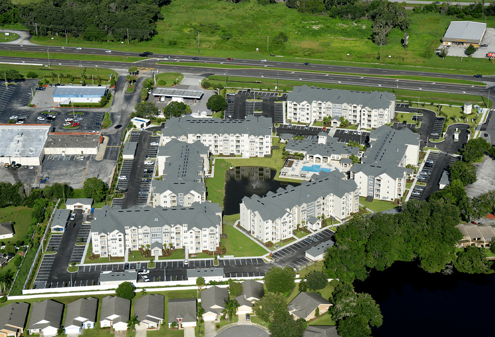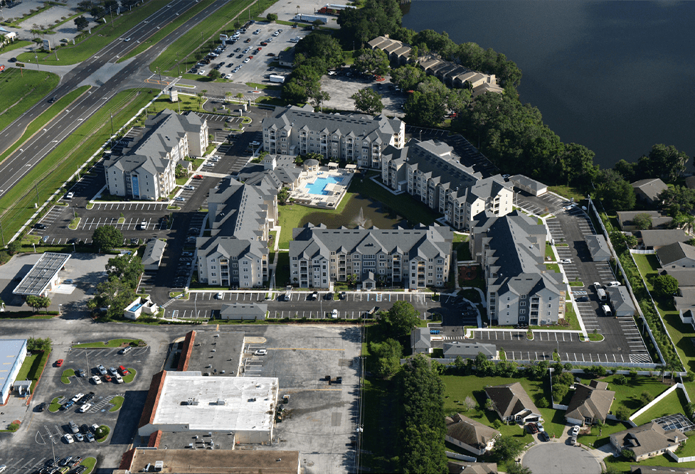 The development is a four-story, resort-style community with elevators and air conditioned corridors.